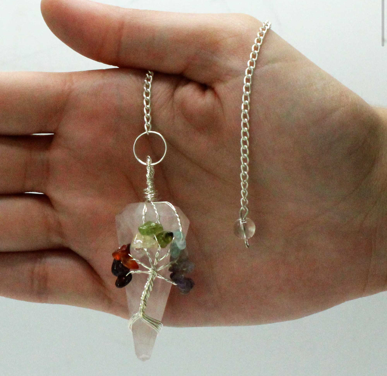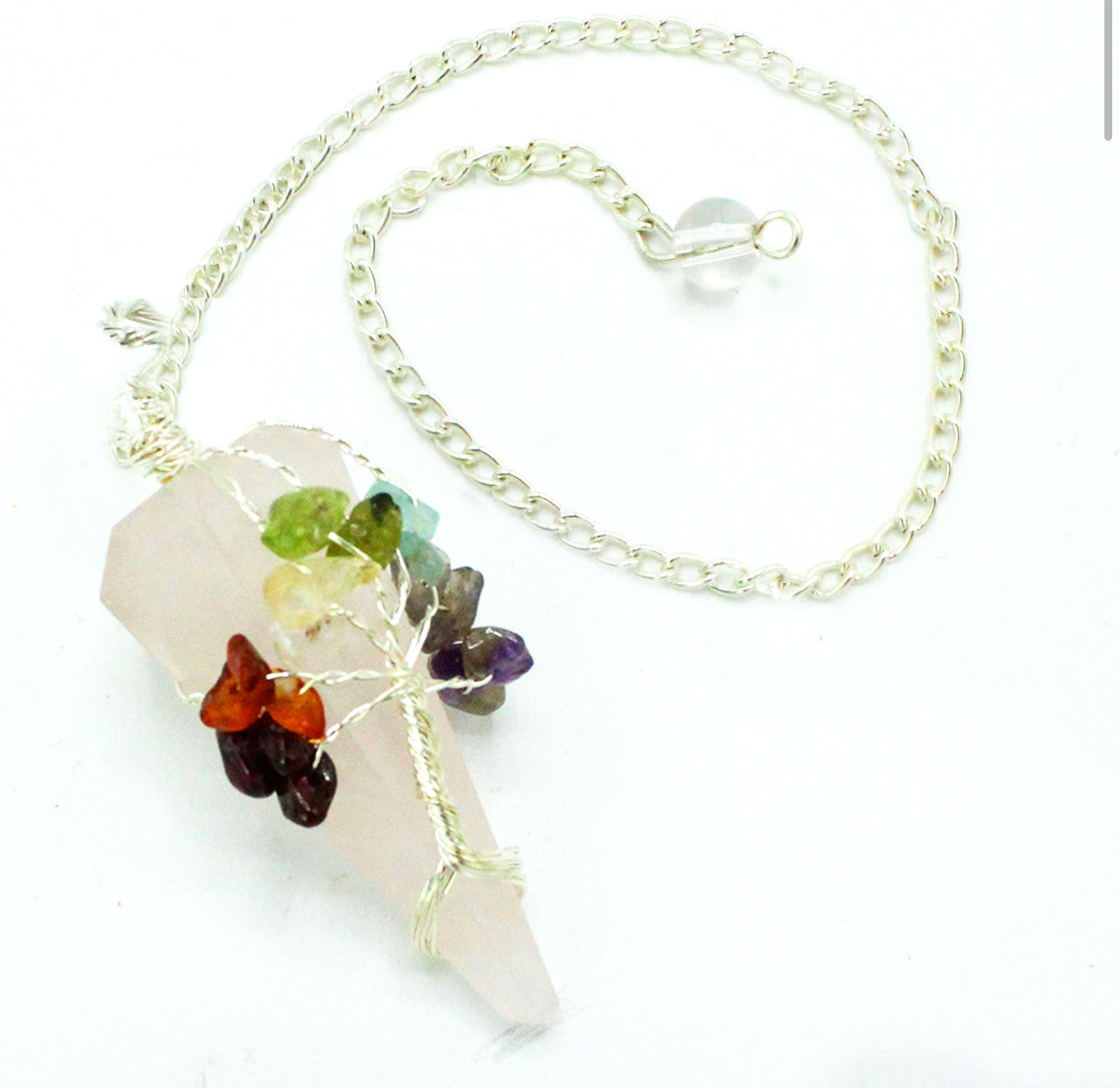 Péndulo Mágico - Siete Chakras - Cuarzo Rosa